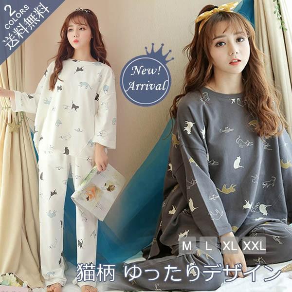 パジャマ レディース 綿100 猫柄服 春秋 ルームウェア 部屋着 寝間着 灰色グレー白色ホワイト 小さいサイズ 大きいサイズ 通常送料無料 Buyee 日本代购平台 产品购物网站大全 Buyee一站式代购 Bot Online